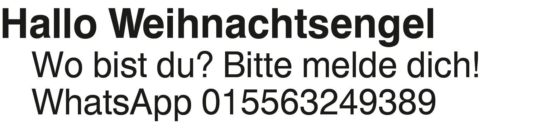 Hallo Weihnachtsengel Wo Melde dich bitte unter WhatsApp 015563249389 rene.naefe1@gmx.deDas könnte Sie auch interessieren