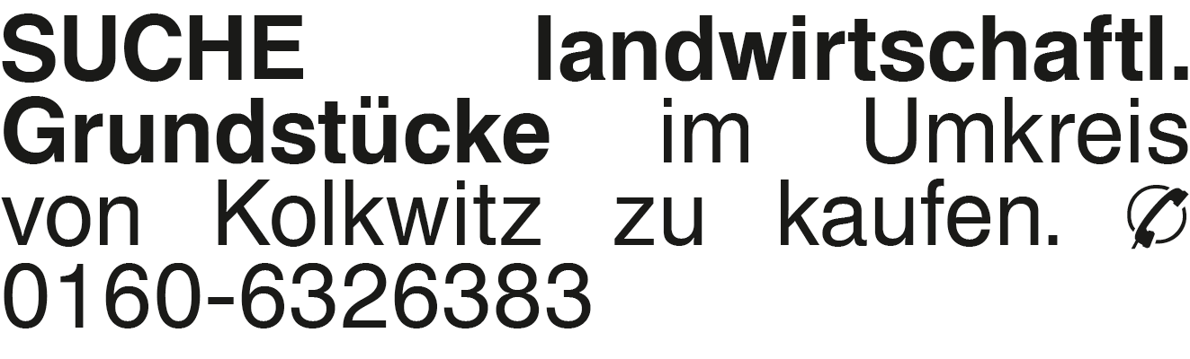 SUCHE landwirtschaftl. Gr im Umkreis von Kolkwitz zu kaufen. Tel. 0160-6326383Das könnte Sie auch interessieren