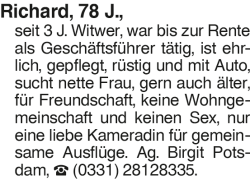 Netter lustvoller Mann su Netter lustvoller Mann sucht Sie für schöne Stunden, Alter egal, bin 63 J., NR/NT und mobil. 0152 13801020