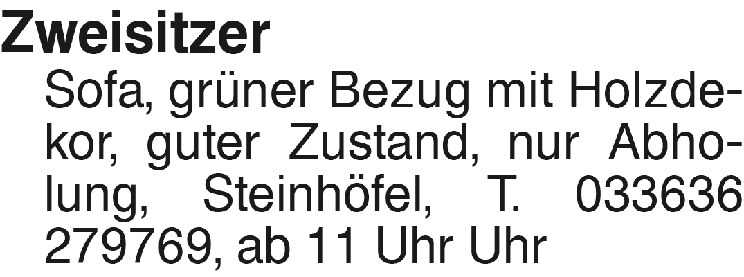 Anzeige vom 27.9.2025 in der Rubrik "Zu verschenken"