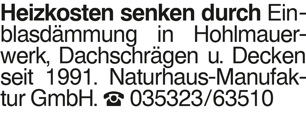 Heizkosten senken durch E Heizkosten senken durch Einblasdämmung in Hohlmauerwerk, Dachschrägen u. Decken seit 1991. Naturhaus-Manufaktur GmbH. 035323/63510