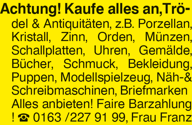 Anzeige vom 4.10.2025 in der Rubrik "Kunst und Antiquitäten"
