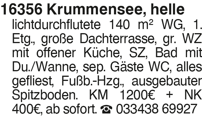16356 Krummensee, helle L 2-Zi.-Whg.,