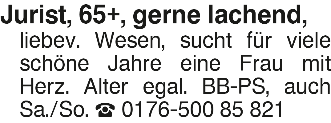 Jurist, 65+, gerne lachend,