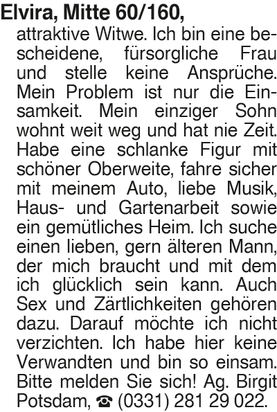 Anzeige vom 11.10.2025 in der Rubrik "Ehe-/ Partnervermittlungen"