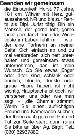 Erscheinungsdatum: Anzeige vom 11.10.2025 in der Rubrik "Er sucht Sie"