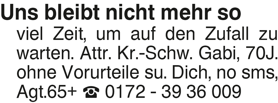 Erscheinungsdatum: Anzeige vom 11.10.2025 in der Rubrik "Sie sucht Ihn"