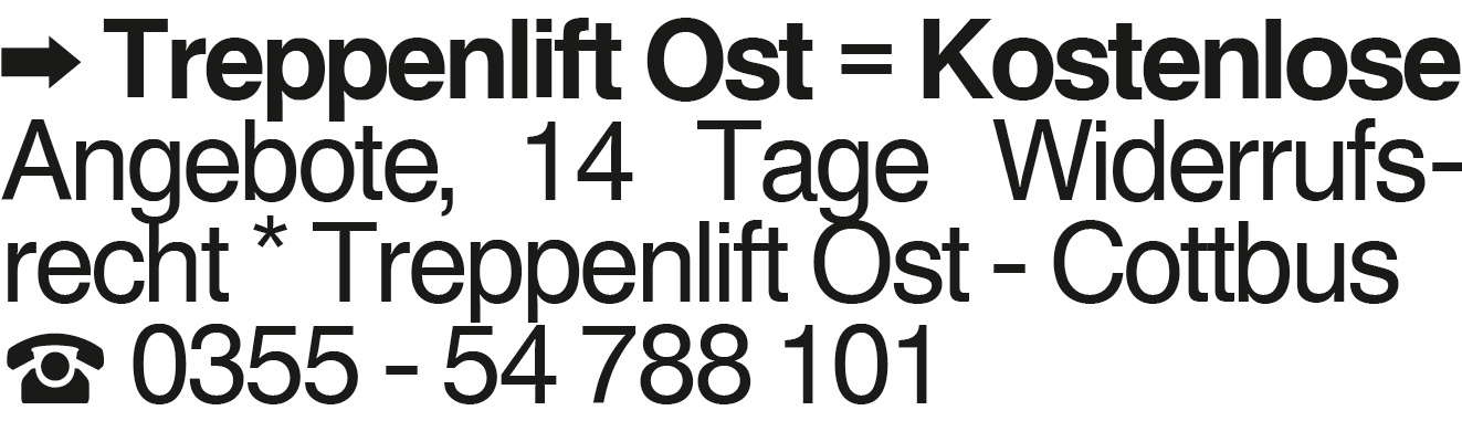 Treppenlift Ost - Kostenlose Angebote Treppenlift Ost = Kostenlose Angebote, 14 Tage Widerrufsrecht Treppenlift Ost - Cottbus 0355 - 54 788 101Das könnte Sie auch interessieren