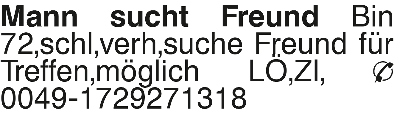 Mann sucht Freund Bin 72, Bin 72,schl,verh,suche Freund für Treffen,möglich LÖ,ZI, Tel. 0049-1729271318Das könnte Sie auch interessieren