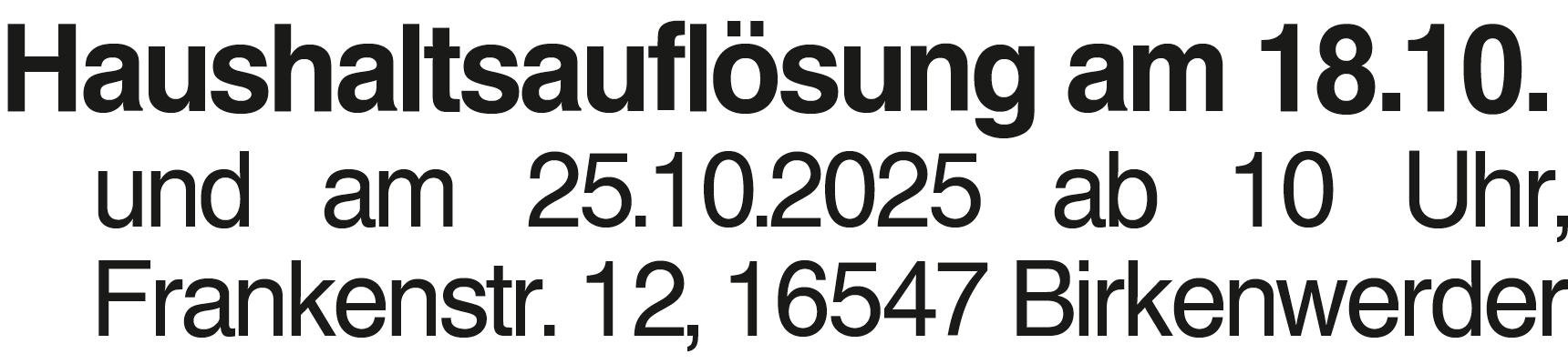 Anzeige vom 18.10.2025 in der Rubrik "Haushaltsauflösung / -Flohmärkte"