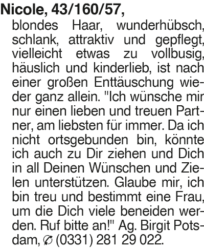 Erscheinungsdatum: Anzeige vom 18.10.2025 in der Rubrik "Ehe-/ Partnervermittlungen"
