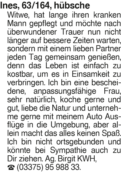 Erscheinungsdatum: Anzeige vom 18.10.2025 in der Rubrik "Ehe-/ Partnervermittlungen"