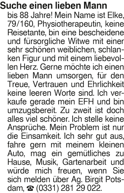 Erscheinungsdatum: Anzeige vom 18.10.2025 in der Rubrik "Ehe-/ Partnervermittlungen"