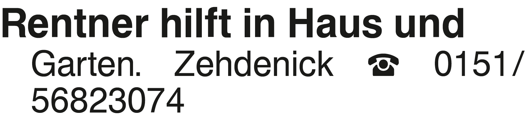 Rentner hilft in Haus und Rentner hilft in Haus und Garten. Zehdenick 0151/56823074Kontakt