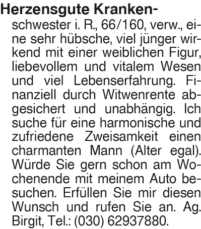 Erscheinungsdatum: Anzeige vom 1.11.2025 in der Rubrik "Sie sucht Ihn"