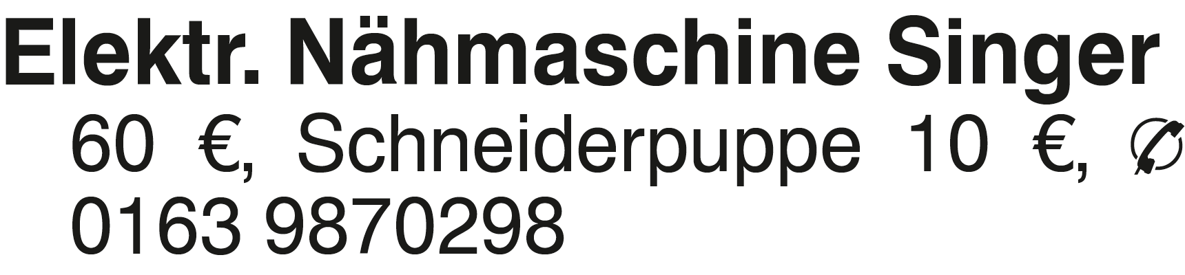 Elektr. Nähmaschine Singe Elektr. Nähmaschine Singer 60 EUR, Schneiderpuppe 10 EUR, 0163 9870298Das könnte Sie auch interessieren
