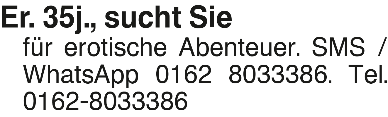 Er. 35j., sucht Sie für e für erotische Abenteuer. SMS / WhatsApp 0162 8033386. Tel. 0162-8033386Das könnte Sie auch interessieren