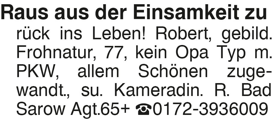 Anzeige vom 15.11.2025 in der Rubrik "Er sucht Sie"