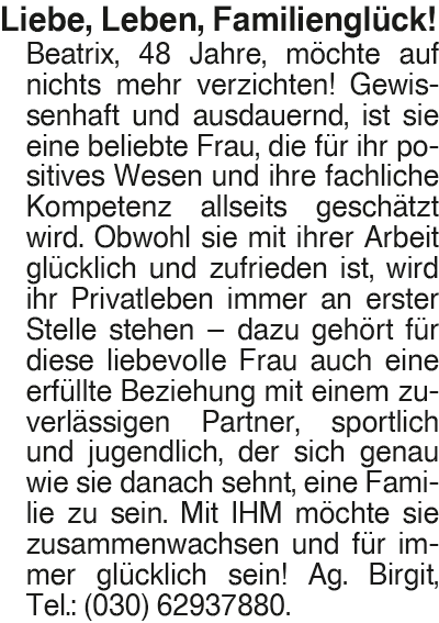 Erscheinungsdatum: Anzeige vom 29.11.2025 in der Rubrik "Sie sucht Ihn"