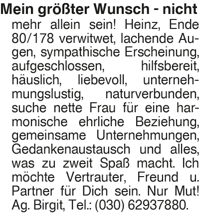 Erscheinungsdatum: Anzeige vom 29.11.2025 in der Rubrik "Er sucht Sie"