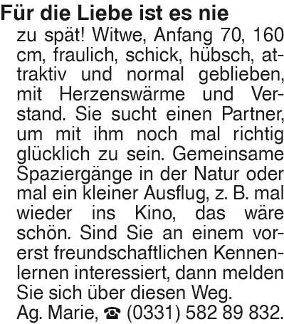 Erscheinungsdatum: Anzeige vom 29.11.2025 in der Rubrik "Ehe-/ Partnervermittlungen"