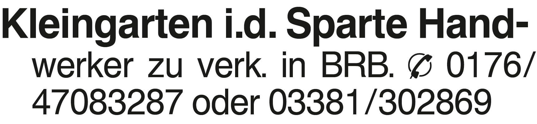 Kleingarten i.d. Sparte H Kleingarten i.d. Sparte Hand- werker zu verk. in BRB. 0176/47083287 oder 03381/302869