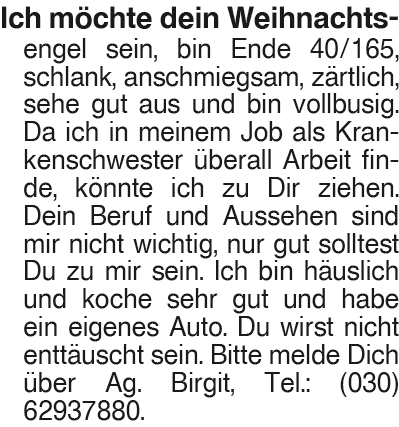 Erscheinungsdatum: Anzeige vom 6.12.2025 in der Rubrik "Sie sucht Ihn"