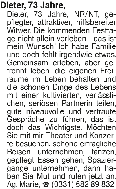 Erscheinungsdatum: Anzeige vom 6.12.2025 in der Rubrik "Ehe-/ Partnervermittlungen"