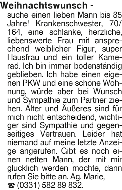 Erscheinungsdatum: Anzeige vom 13.12.2025 in der Rubrik "Ehe-/ Partnervermittlungen"