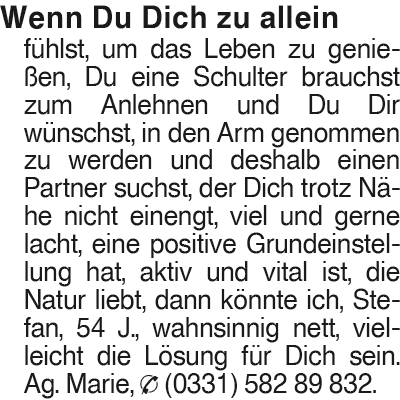 Erscheinungsdatum: Anzeige vom 13.12.2025 in der Rubrik "Ehe-/ Partnervermittlungen"