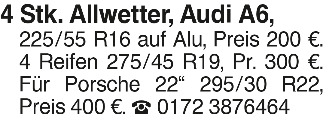 Anzeige vom 13.12.2025 in der Rubrik "Verkauf"