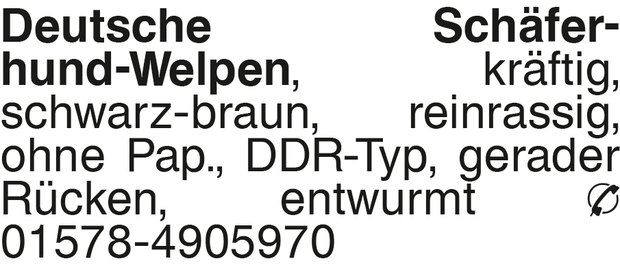 Deutsche Schäferhund-Welp kräftig, schwarz-braun, reinrassig, o. Pap., DDR-Typ, gerader Rücken, entwurmt Tel. 01578-4905970