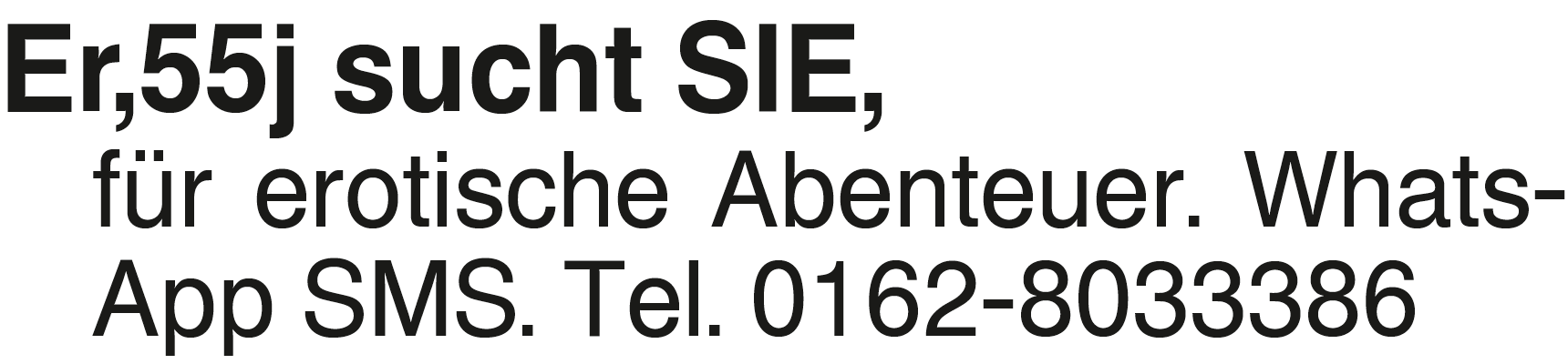 Er,55j sucht SIE, für ero für erotische Abenteuer. WhatsApp SMS. Tel. 0162-8033386Das könnte Sie auch interessieren