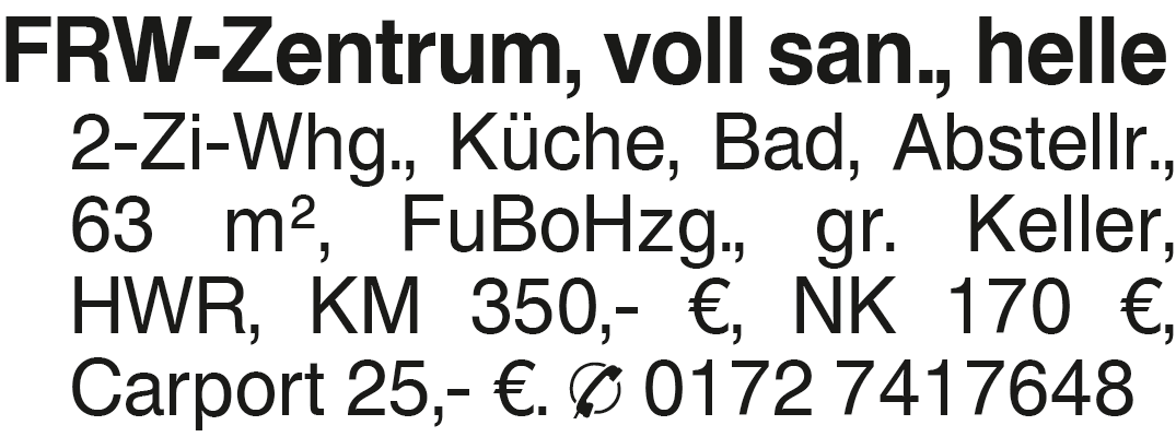 Erscheinungsdatum: Anzeige vom 17.1.2026 in der Rubrik "2 - 2,5 - Zimmer - Wohnung"