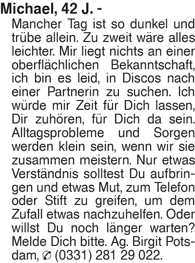 Erscheinungsdatum: Anzeige vom 31.1.2026 in der Rubrik "Ehe-/ Partnervermittlungen"