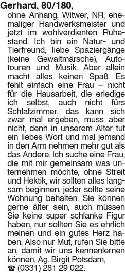 Erscheinungsdatum: Anzeige vom 31.1.2026 in der Rubrik "Ehe-/ Partnervermittlungen"
