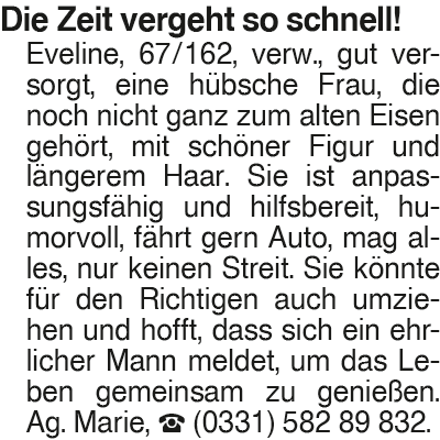 Erscheinungsdatum: Anzeige vom 31.1.2026 in der Rubrik "Ehe-/ Partnervermittlungen"