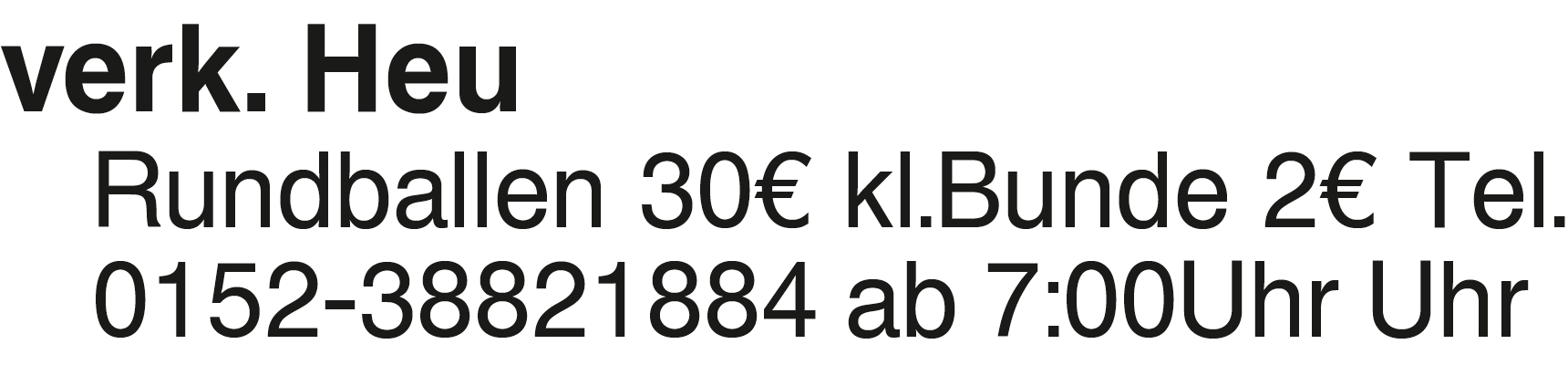 verk. Heu Rundballen 30 E Rundballen 30 EUR kl.Bunde 2 EUR Tel. 0152-38821884 ab 7:00Uhr UhrKontakt
