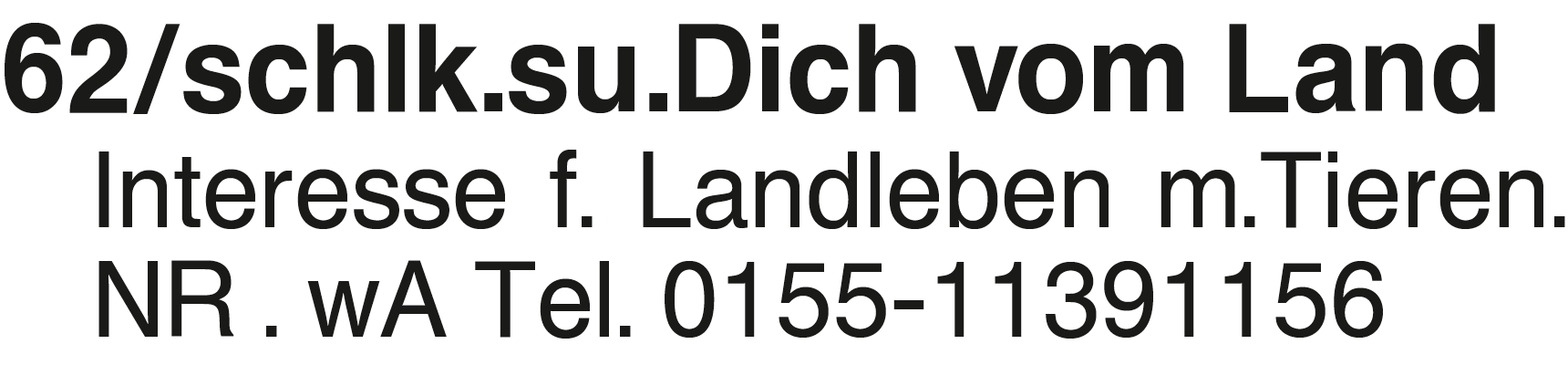 62/schlk.su.Dich vom Land Interesse f. Landleben m.Tieren. NR . wA Tel. 0155-11391156Das könnte Sie auch interessieren