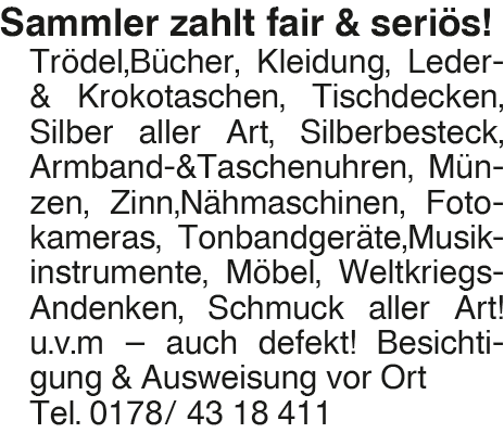 Anzeige vom 31.1.2026 in der Rubrik "Kunst und Antiquitäten"