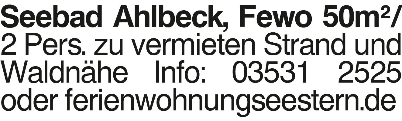 Seebad Ahlbeck, Fewo 50m2 Seebad Ahlbeck, Fewo 50m2/2 Pers. zu vermieten Strand und Waldnähe Info: 03531 2525 oder ferienwohnungseestern.de