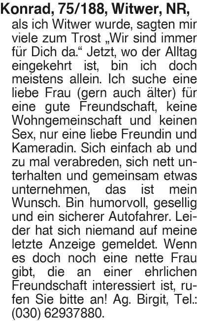 Erscheinungsdatum: Anzeige vom 7.2.2026 in der Rubrik "Er sucht Sie"