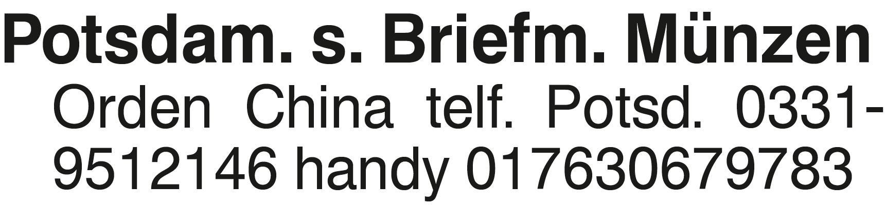 Potsdam. s. Briefm. Münze Potsdam. s. Briefm. Münzen Orden China telf. Potsd. 0331-9512146 handy 017630679783Das könnte Sie auch interessieren
