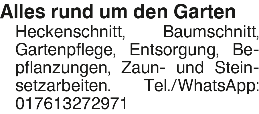 Anzeige vom 14.2.2026 in der Rubrik "Handwerkerdienste"