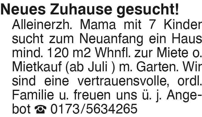 Anzeige vom 21.2.2026 in der Rubrik "5 - 5,5 - Zimmer - Wohnung"