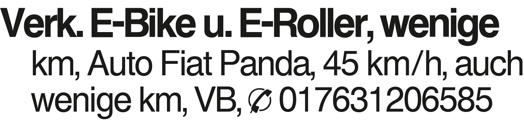 Verk. E-Bike u. E-Roller, Verk. E-Bike u. E-Roller, wenige km, Auto Fiat Panda, 45 km/h, auch wenige km, VB, 017631206585Das könnte Sie auch interessieren