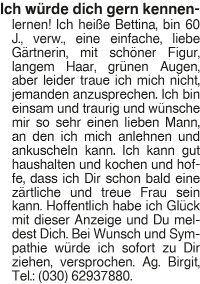 Anzeige vom 28.2.2026 in der Rubrik "Sie sucht Ihn"