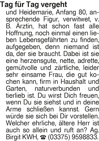 Erscheinungsdatum: Anzeige vom 28.2.2026 in der Rubrik "Ehe-/ Partnervermittlungen"