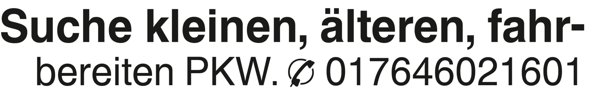 Suche kleinen, älteren, f Suche kleinen, älteren, fahr- bereiten PKW. 017646021601