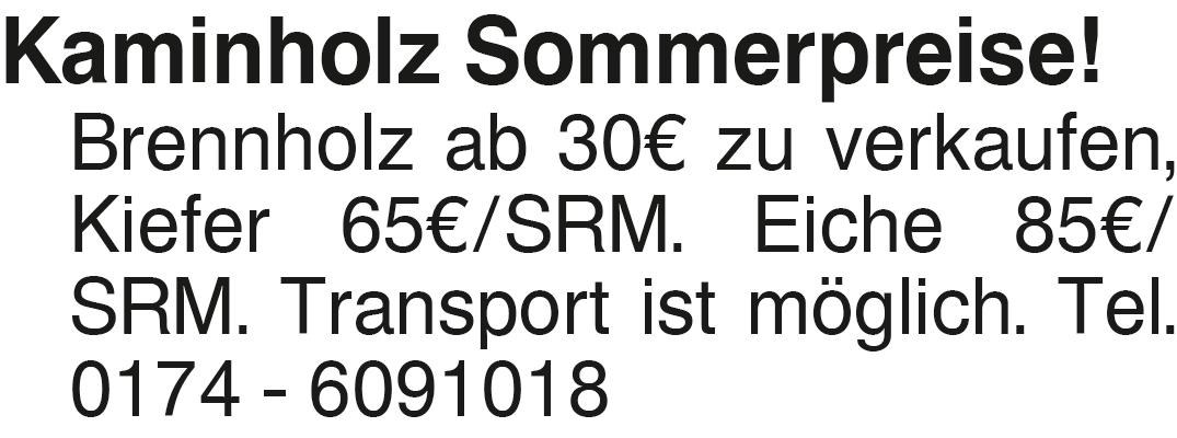 Anzeige Brennholz